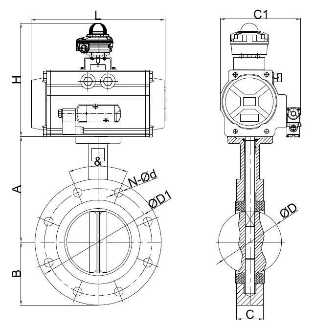 氣動U型蝶閥外形圖: